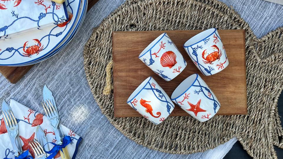 Inspirada en la belleza y diversidad de los océanos, la colección Positano captura la esencia del mar en una paleta de azules profundos y naranjas cálidos. Con diseños de corales y elementos marinos, cada pieza invita a la serenidad y al encanto de las profundidades oceánicas, ideal para darle un toque refrescante y vibrante a cualquier mesa.