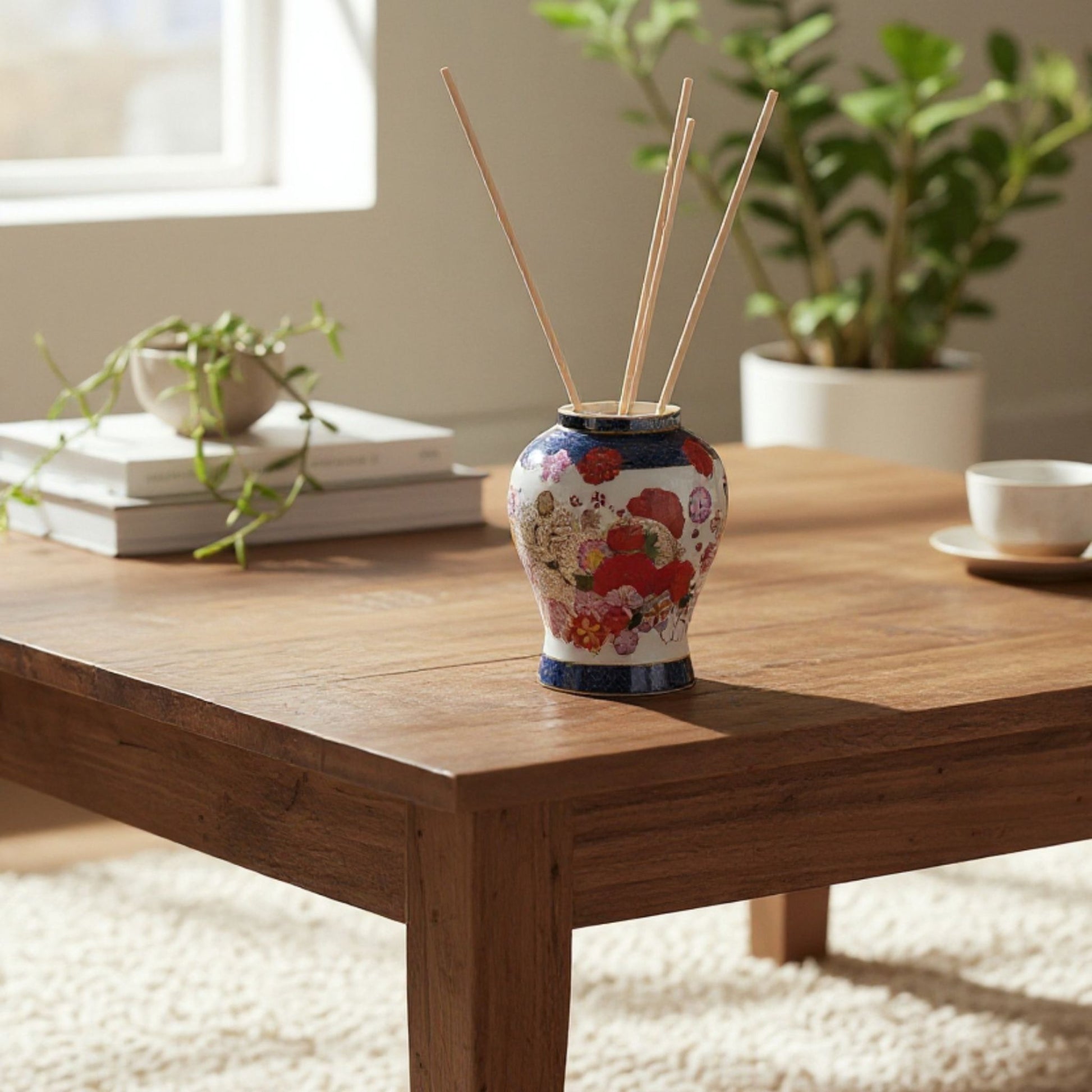 Si te gustan los objetos que transforman lo cotidiano en especial, este difusor es para ti. Nuestro Difusor Origami de la Colección Accesorios combina porcelana delicada con motivos florales y un aroma fresco y elegante que viste cualquier ambiente. Incluye varillas de ratán y un frasco de fragancia floral de 100 ml para una experiencia sensorial completa.