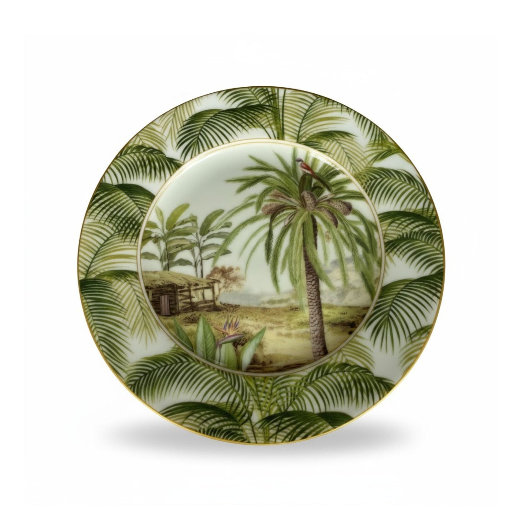 Si te atraen las mesas con carácter, el Plato Postre Ceylon (19 cm) es para ti. Su diseño selva verde evoca palmeras y exuberancia natural, aportando un toque exótico y vibrante que transforma desde una comida casual en familia hasta una reunión con amigos.