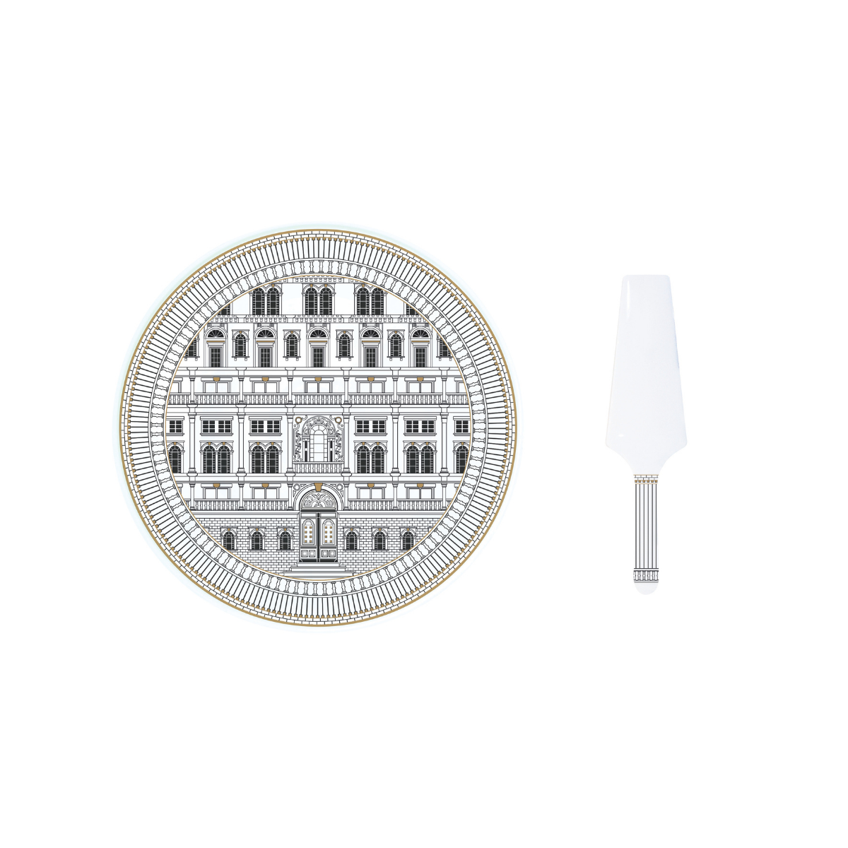 Si te atrae la sofisticación serena, el Tortero Palazzo (32 cm) es para ti. Inspirado en la majestuosidad de templos y columnas griegas, su diseño equilibra proporciones clásicas con un aire contemporáneo que realza tortas, tartas, fruta o petit fours.